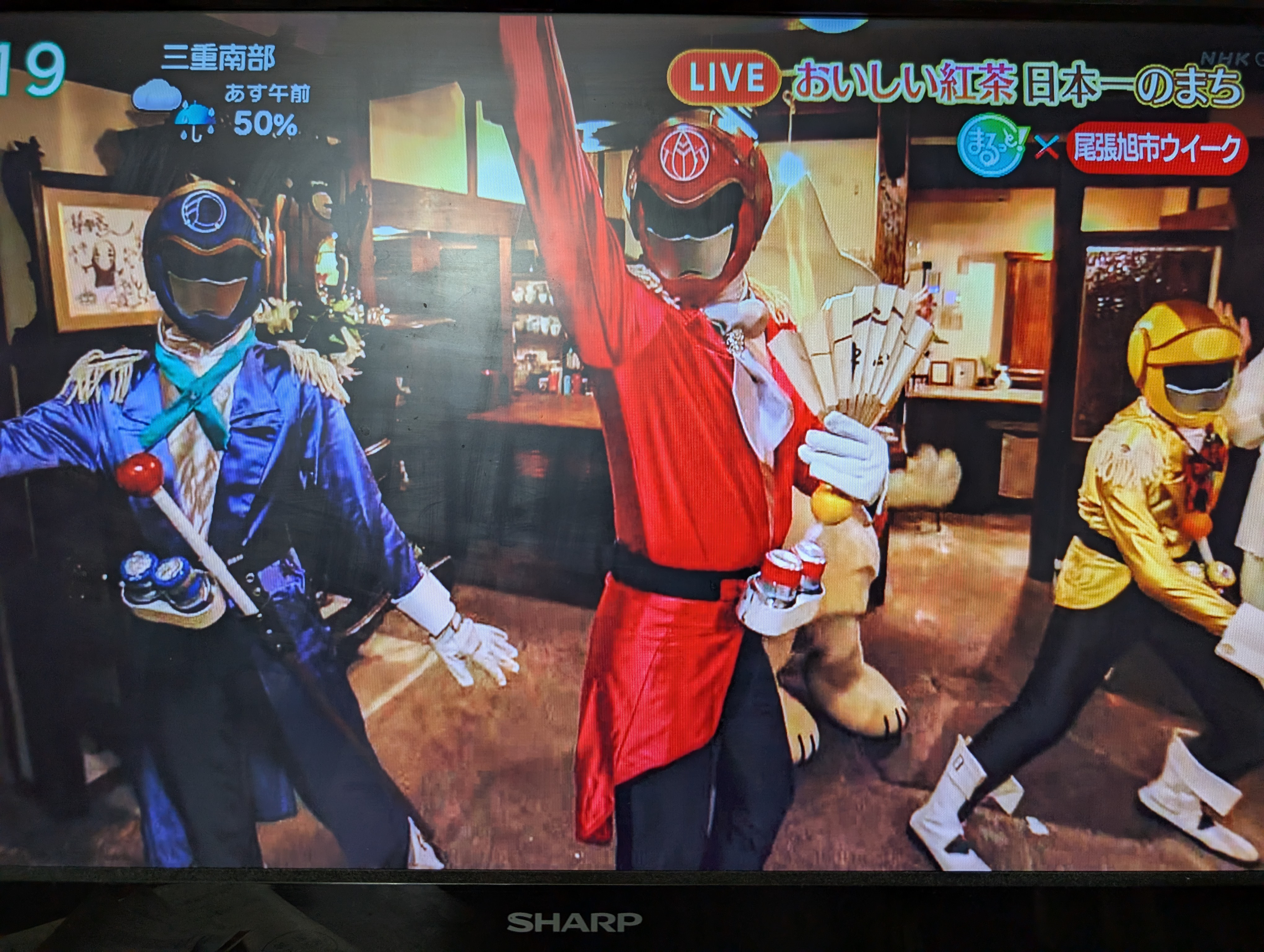 NHK名古屋放送局から平日毎日18:10~18:59に放送されているローカルワイドニュース番組「まるっと!」で、10/14(火)~10/17(金)に組まれた特集「尾張旭ウィーク」の初日・10/14(火)に、紅茶宣隊ティーバトラーを呼んでいただきました。